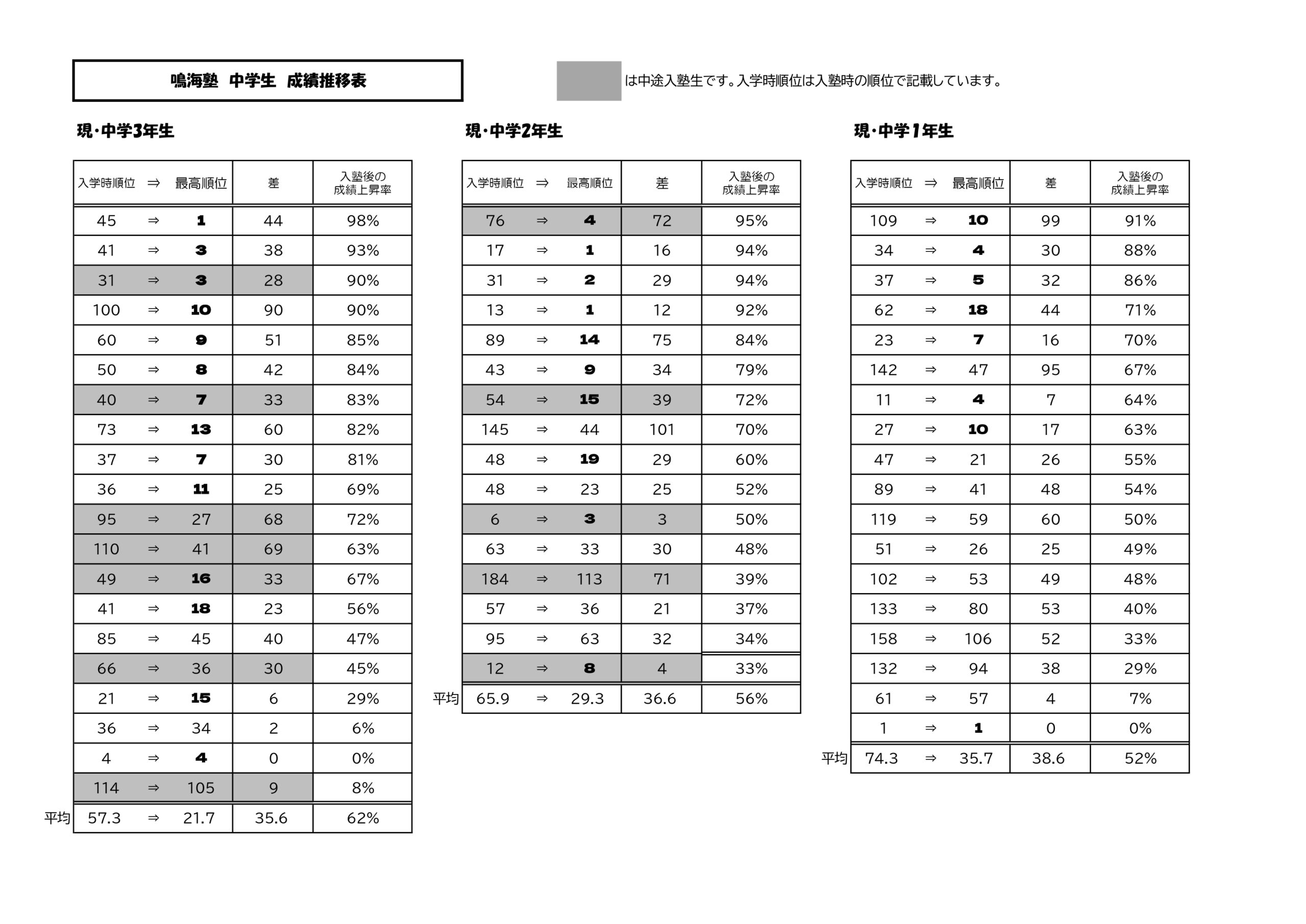 👇👇現塾生全員の成績変化です👇👇こんな感じで成長していきます👍